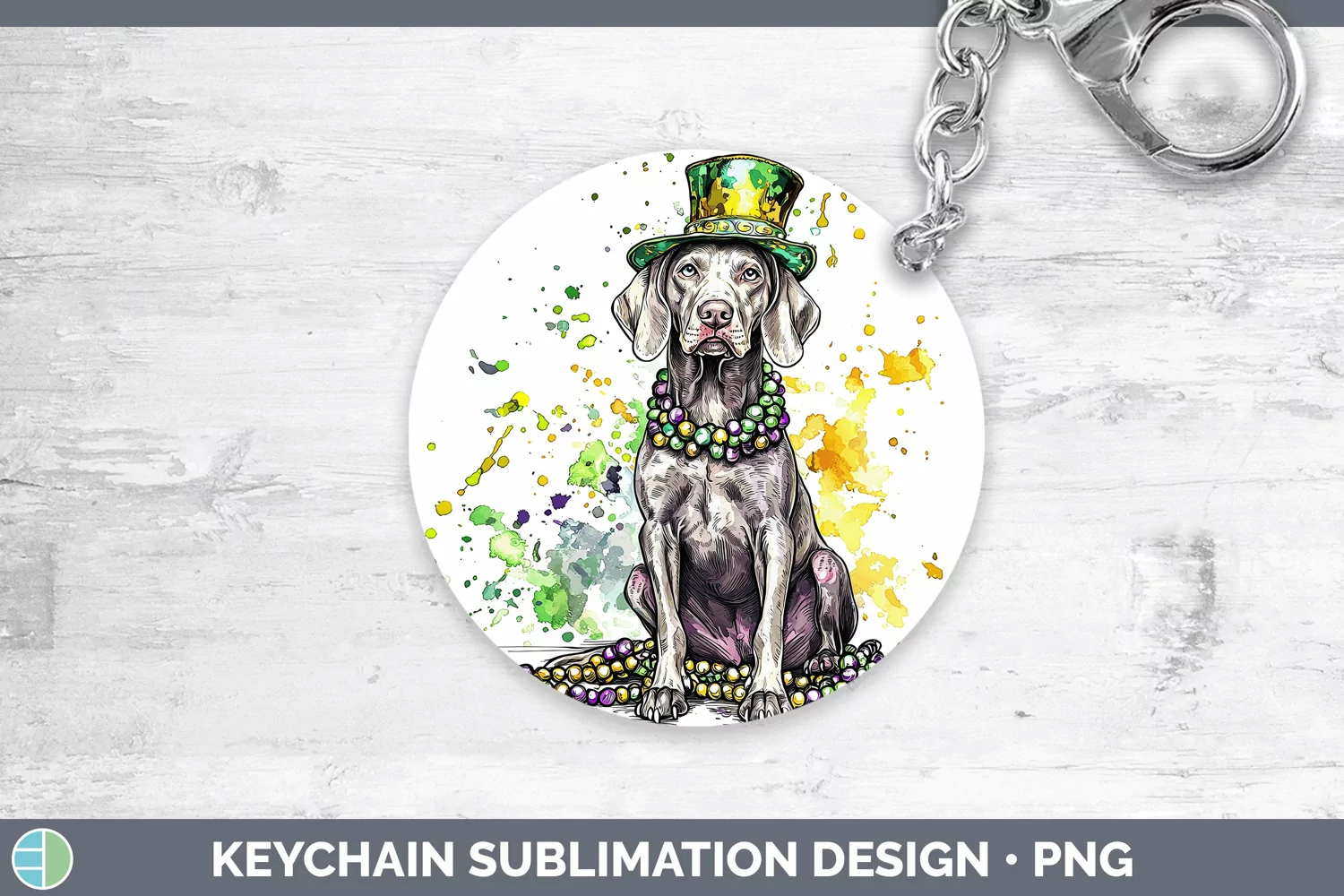 Mardi Gras Splash Dogs Weimaraner Keychain Sublimation Keyri