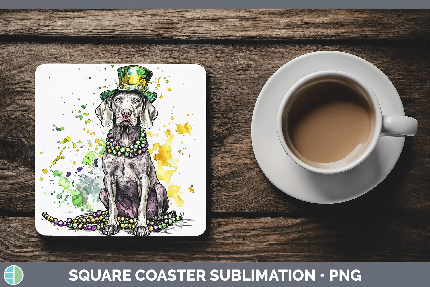 Mardi Gras Splash Dogs Weimaraner Square Coaster Sublimation