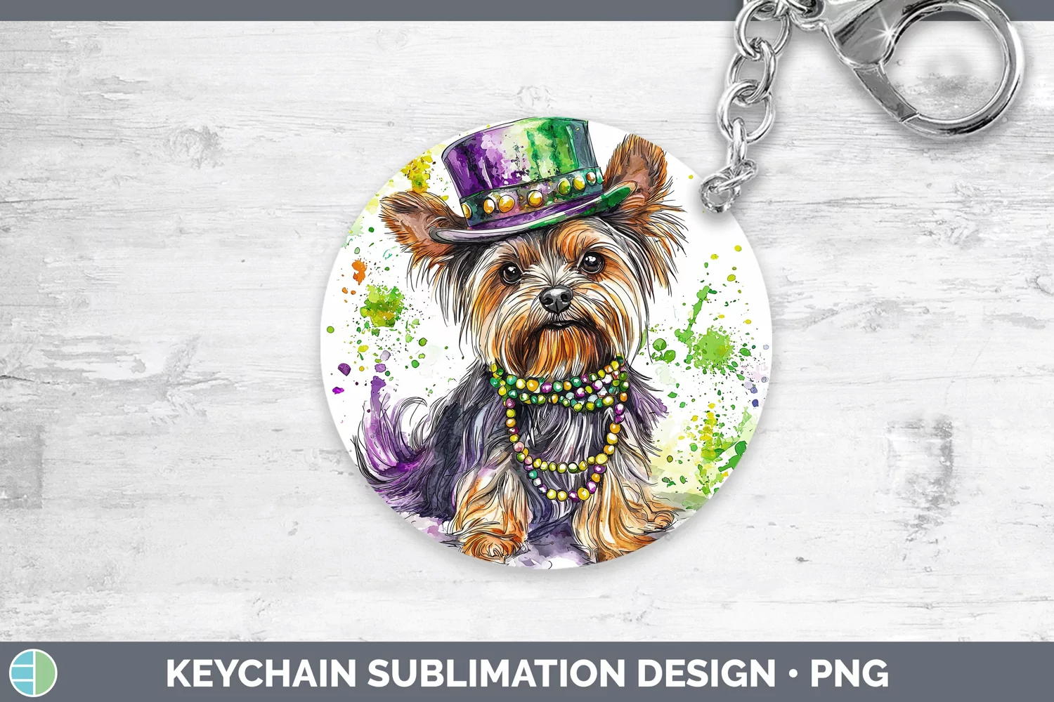 Mardi Gras Splash Dogs Yorkshire Terrier Keychain Sublimatio