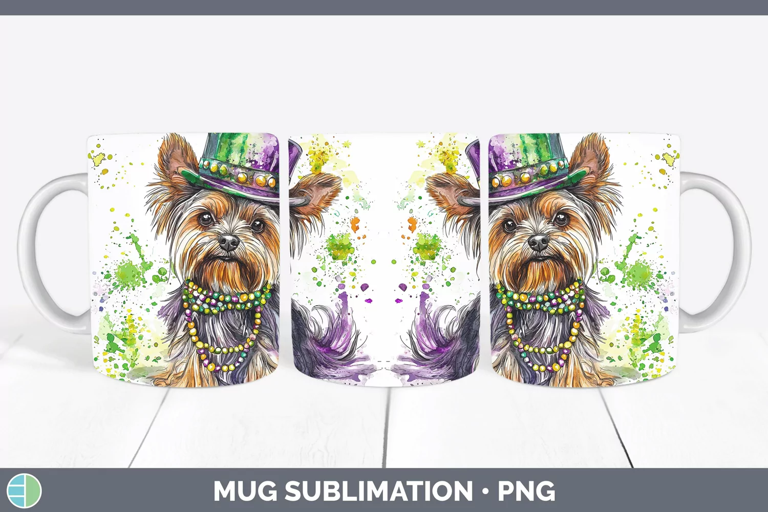 Similar Design Products to Mardi Gras Splash Dogs Yorkshire Terrier Mug Wrap Sublimatio