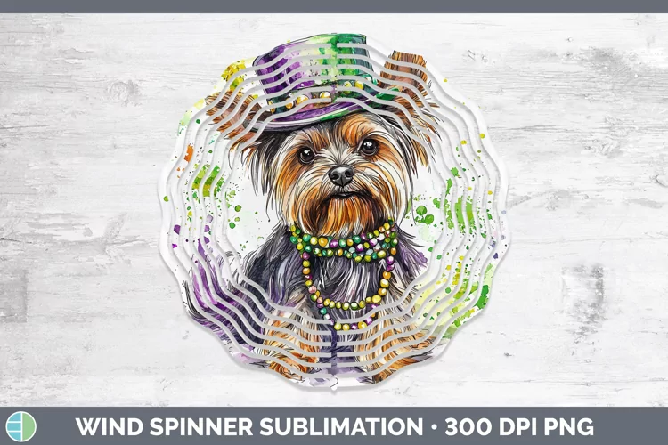 Mardi Gras Splash Dogs Yorkshire Terrier Wind Spinner Sublim
