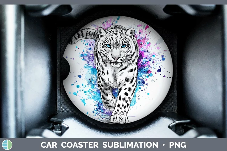 Splash Wildcats Leopard Snow Car Coaster Sublimation Design