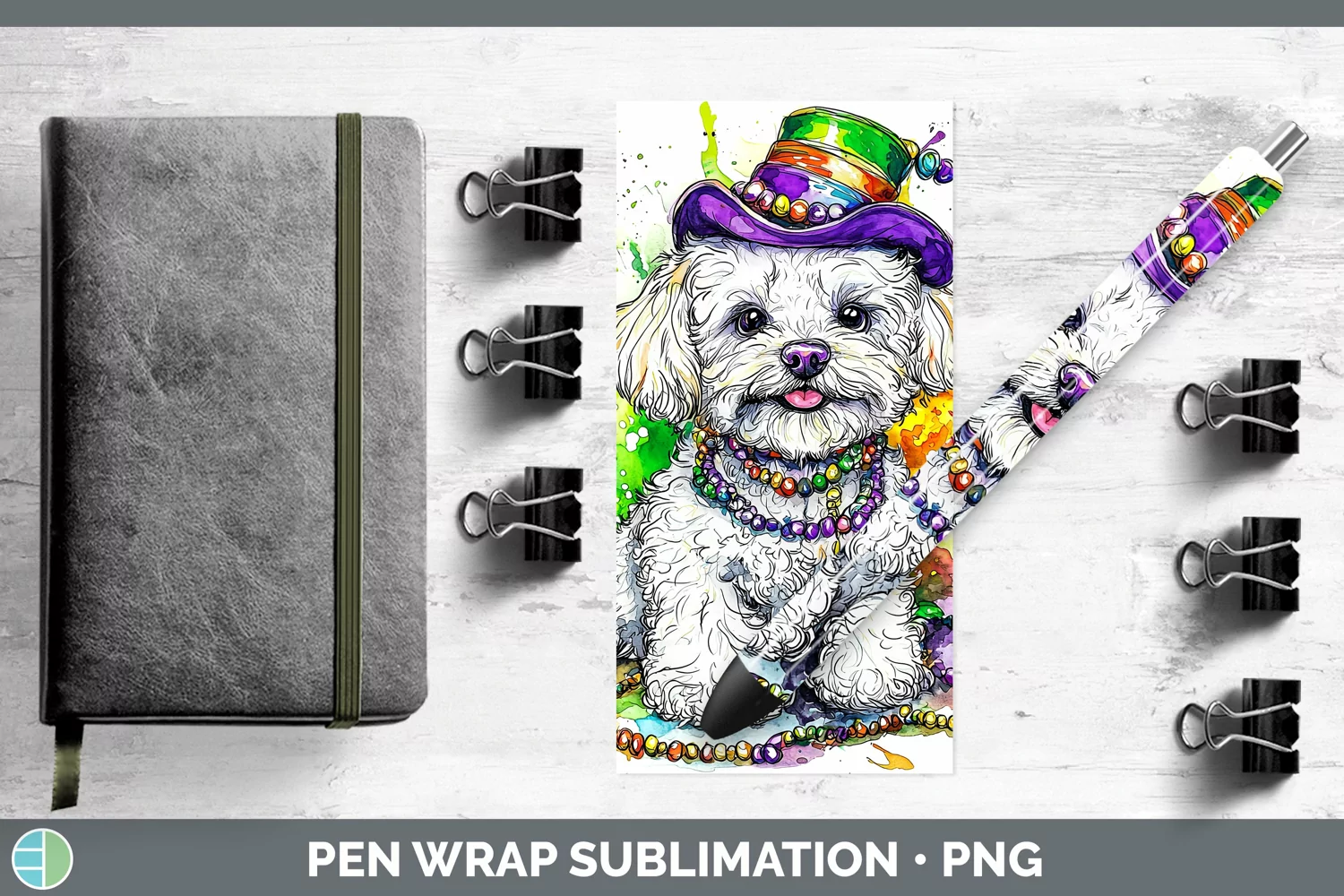 Mardi Gras Splash Dogs Bichon Frise Pen Wrap Sublimation Pen