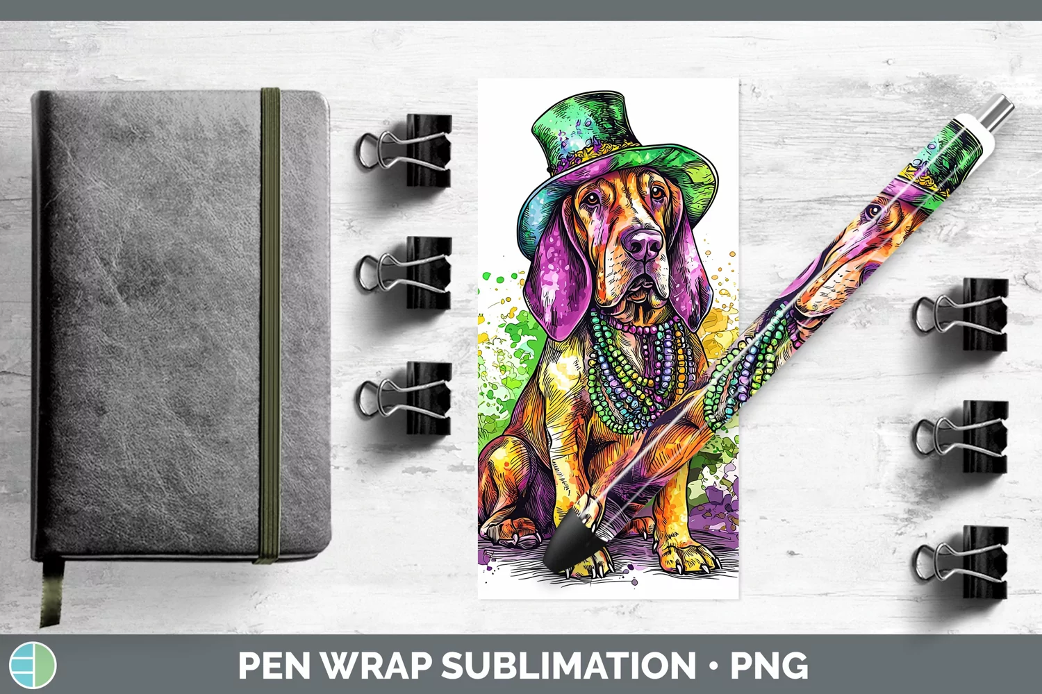 Mardi Gras Splash Dogs Bloodhound Pen Wrap Sublimation Pen D