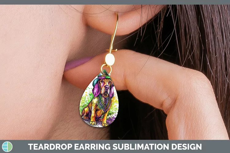 Similar Design Products to Mardi Gras Splash Dogs Bloodhound Teardrop Earrings Sublimat
