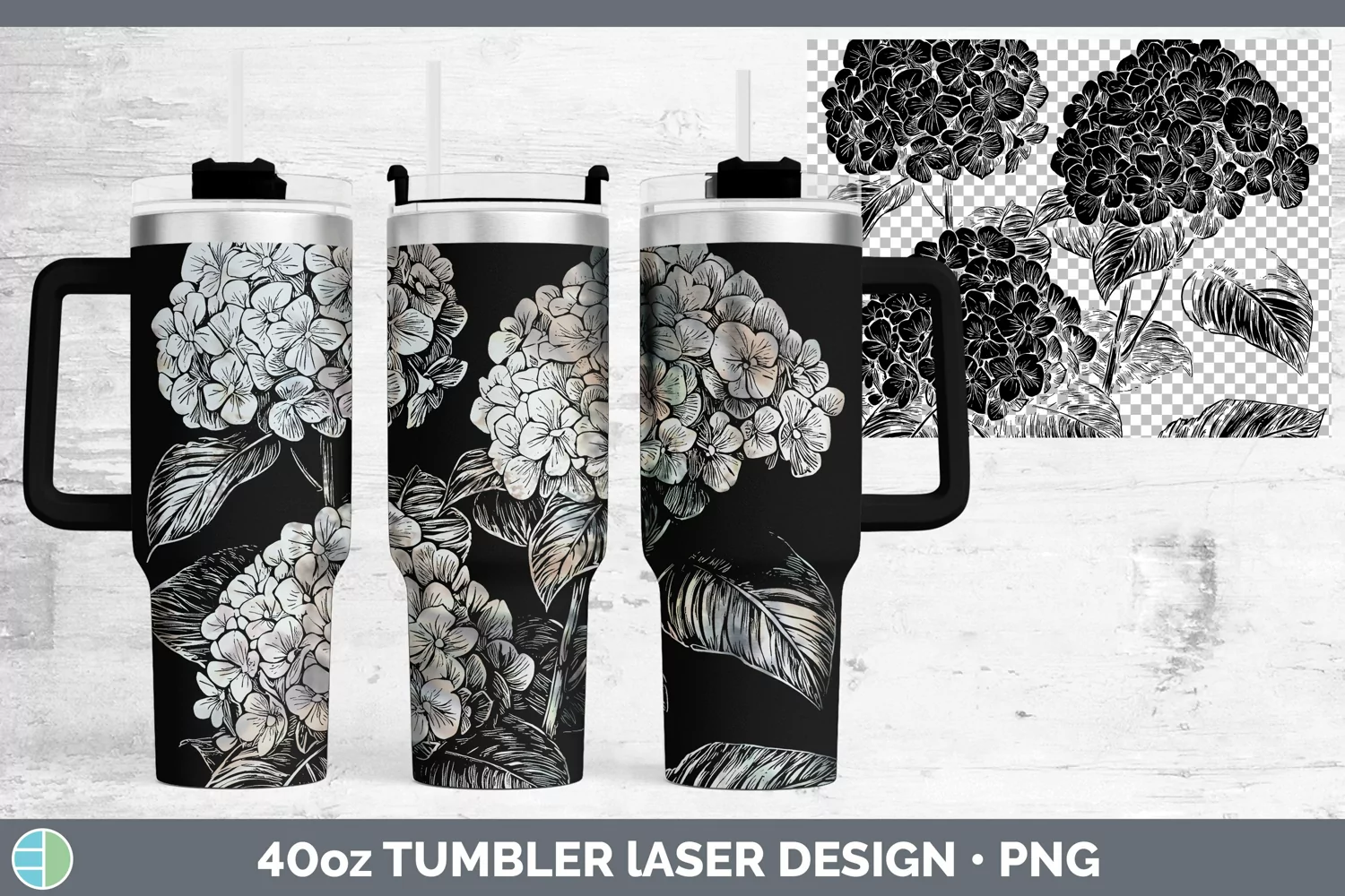 Etch Hydrangea Laser 40oz Tumbler Sublimation Tumbler Design