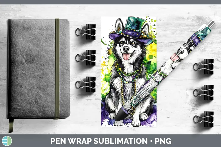 Mardi Gras Splash Dogs Husky Pen Wrap Sublimation Pen Design