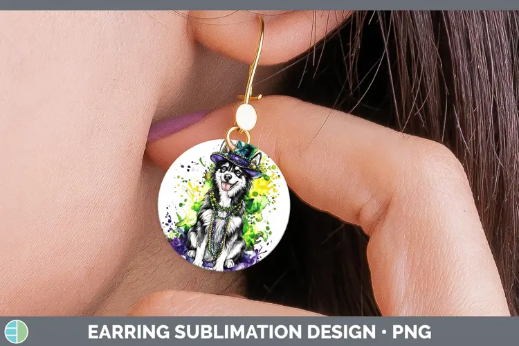Similar Design Products to Mardi Gras Splash Dogs Husky Round Earrings Sublimation Earr