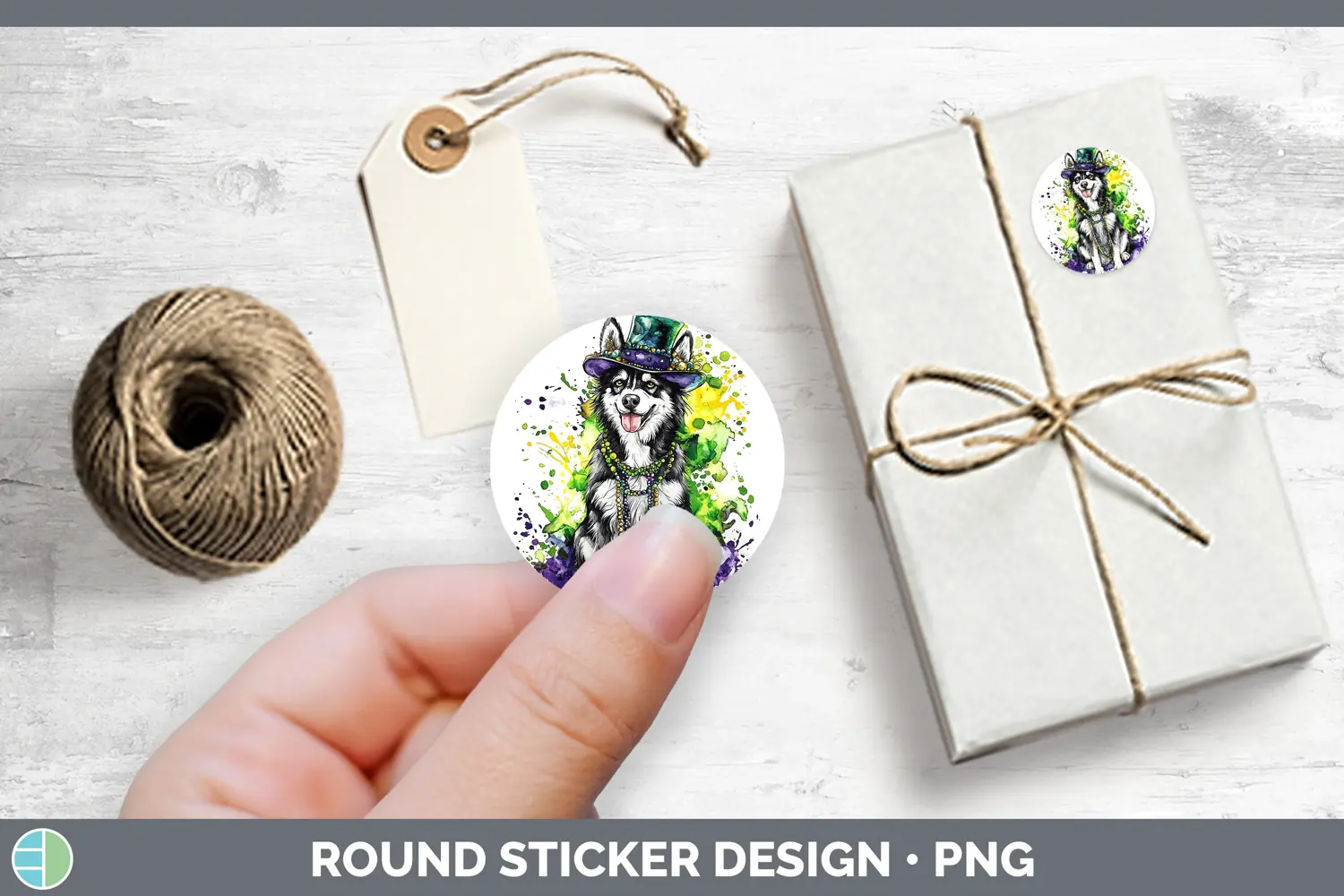 Mardi Gras Splash Dogs Husky Stickers | Round Labels Designs