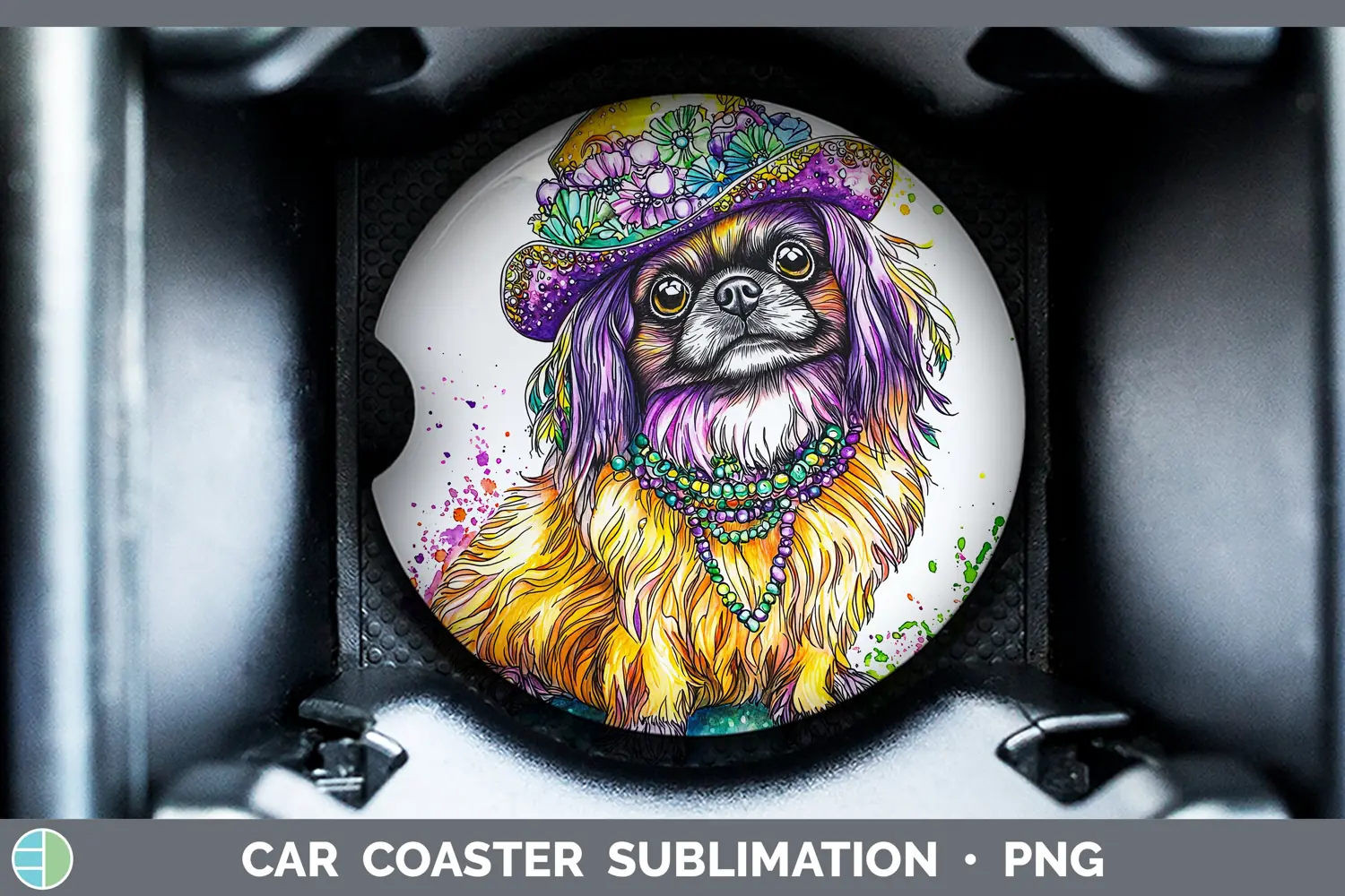 Mardi Gras Splash Dogs Pekingese Car Coaster Sublimation De