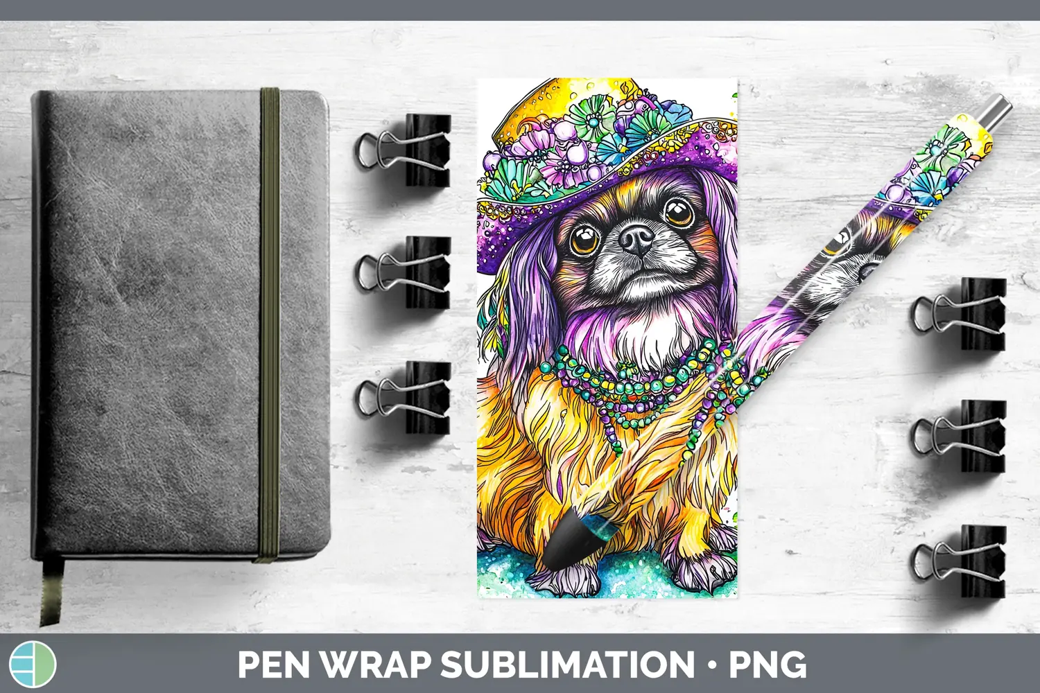 Mardi Gras Splash Dogs Pekingese Pen Wrap Sublimation Pen De