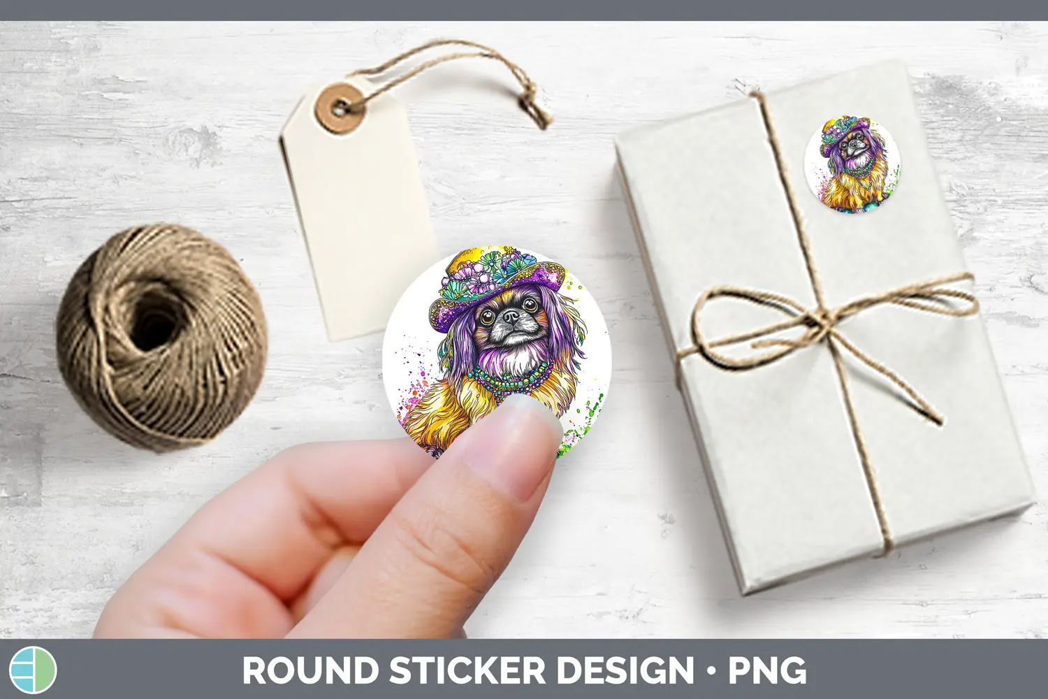 Mardi Gras Splash Dogs Pekingese Stickers | Round Labels Des
