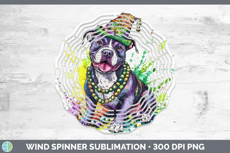 Mardi Gras Splash Dogs Pit Bull Wind Spinner Sublimation Spi