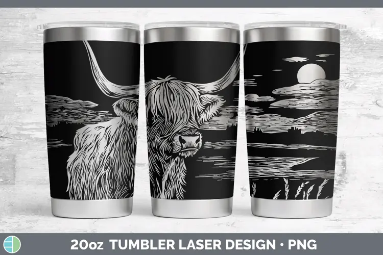 Etch Highland Cow Laser 20oz Tumbler Sublimation Tumbler Des