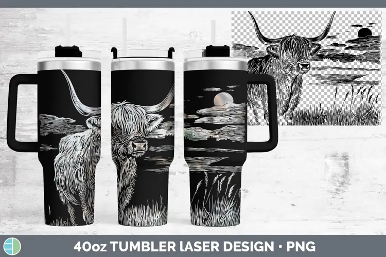 Etch Highland Cow Laser 40oz Tumbler Sublimation Tumbler Des