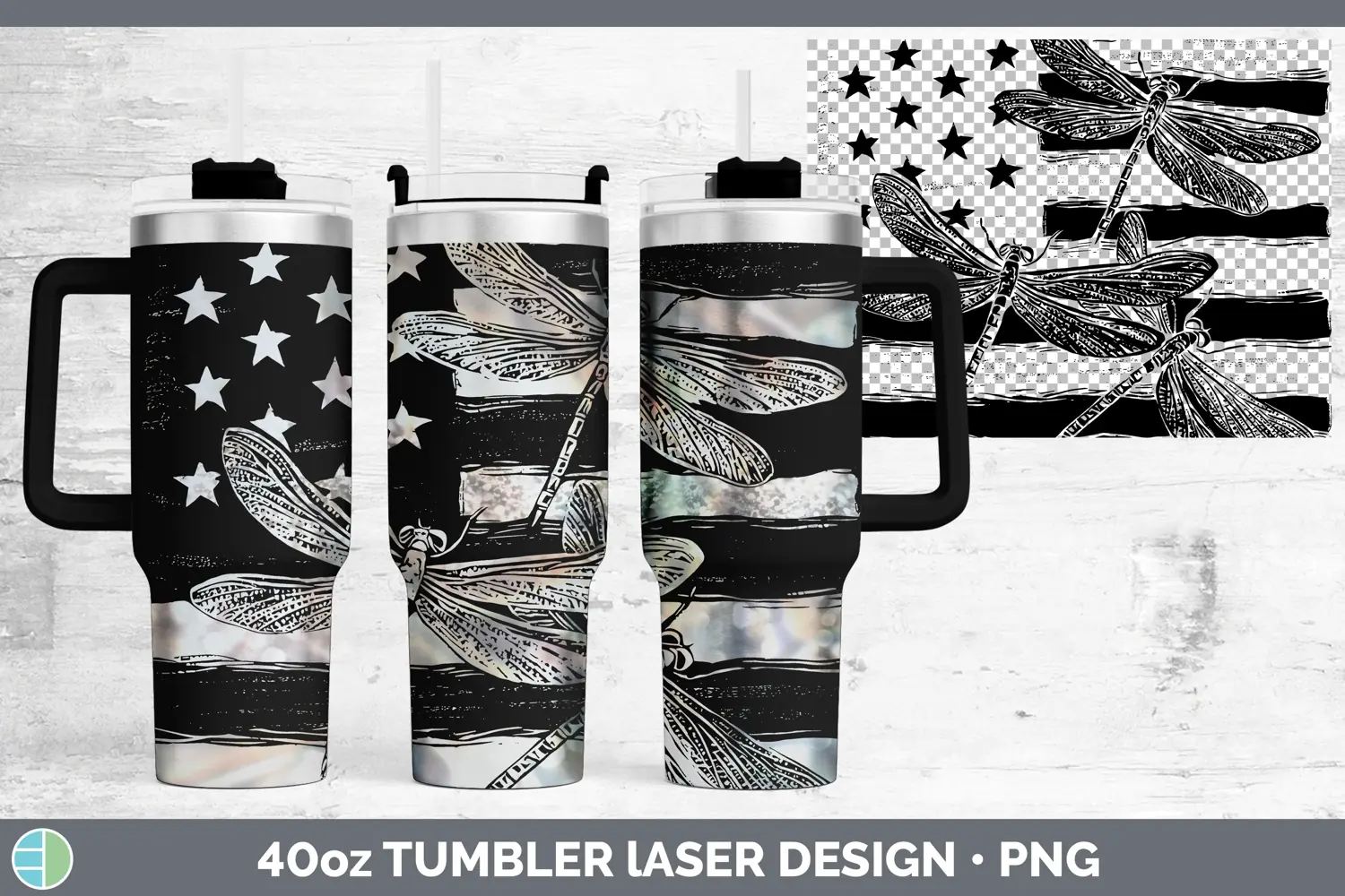 Patriotic Flag Dragonfly Laser 40oz Tumbler Sublimation Tumb