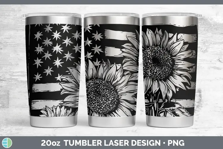 Patriotic Flag Sunflower Laser 20oz Tumbler Sublimation Tumb