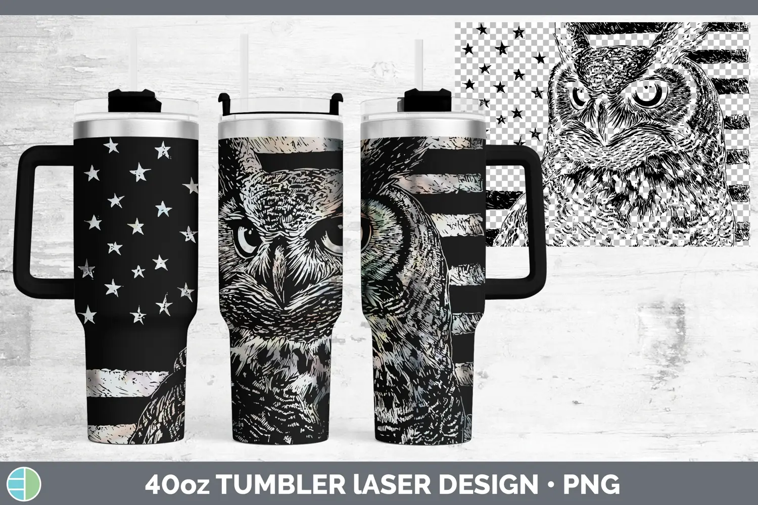 Patriotic Flag Owl Laser 40oz Tumbler Sublimation Tumbler De