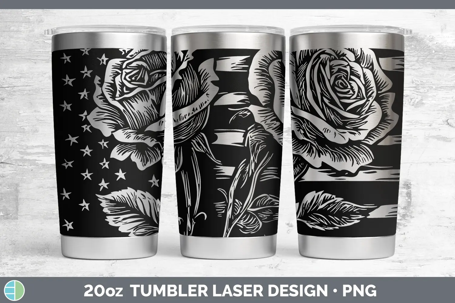 Patriotic Flag Rose Laser 20oz Tumbler Sublimation Tumbler D
