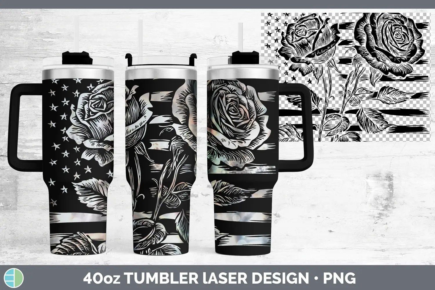Patriotic Flag Rose Laser 40oz Tumbler Sublimation Tumbler D