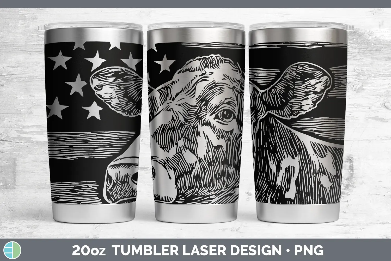 Patriotic Flag Cow Laser 20oz Tumbler Sublimation Tumbler De