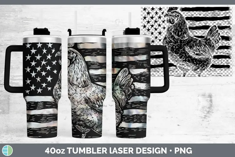 Patriotic Flag Chicken Laser 40oz Tumbler Sublimation Tumble