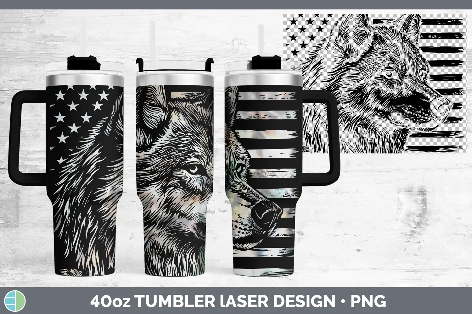 Patriotic Flag Wolf Laser 40oz Tumbler Sublimation Tumbler D