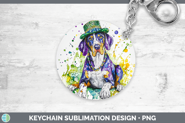 Mardi Gras Splash Dogs Bluetick Coonhound Keychain Sublimati