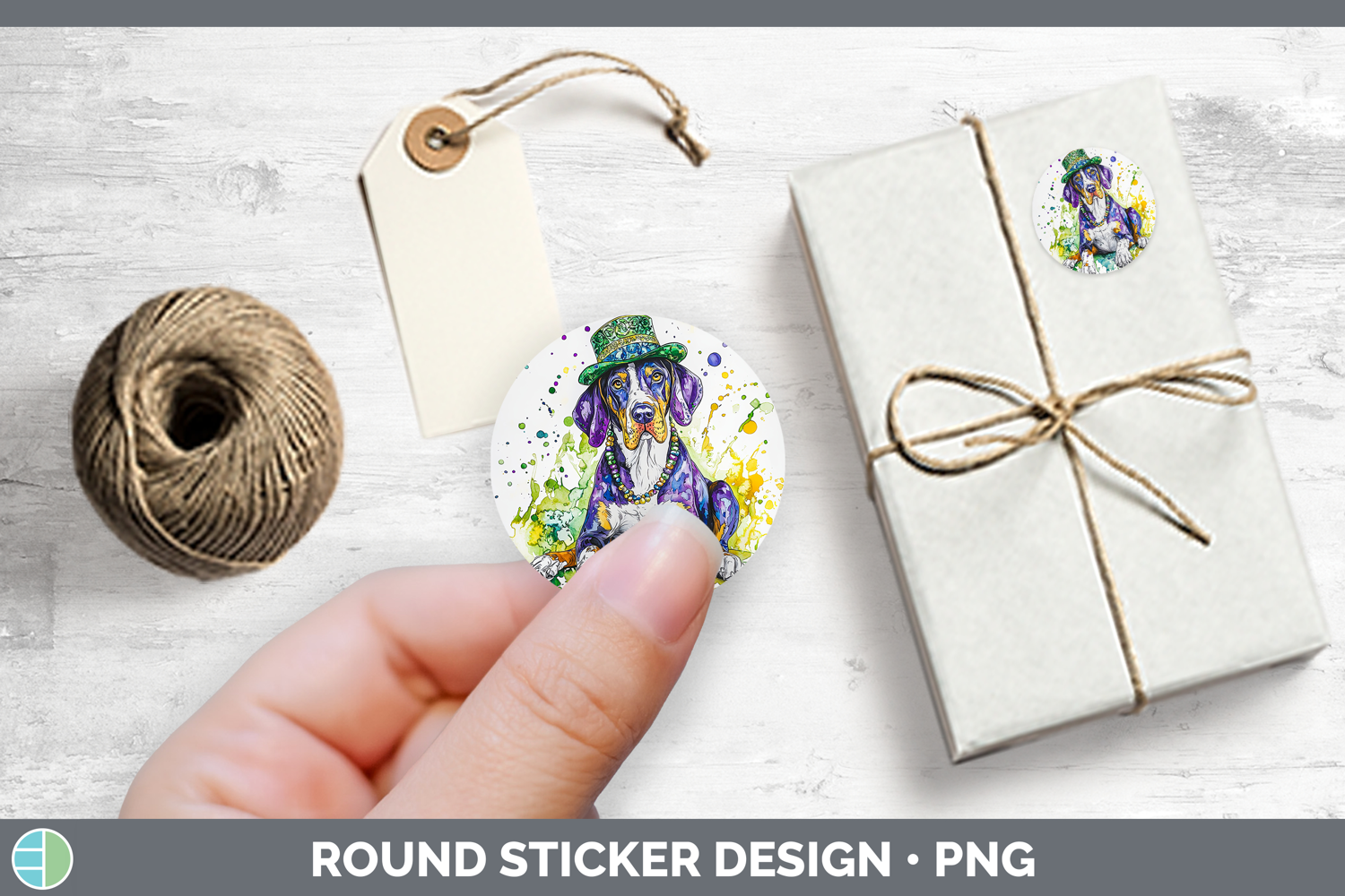 Mardi Gras Splash Dogs Bluetick Coonhound Stickers | Round L