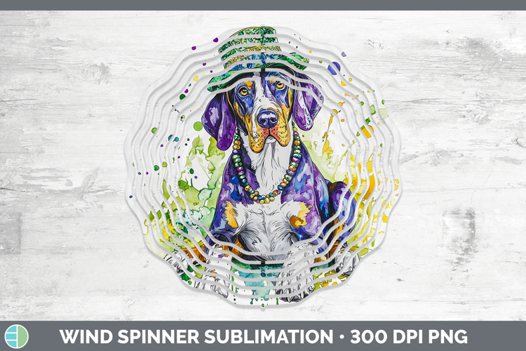 Mardi Gras Splash Dogs Bluetick Coonhound Wind Spinner Subli