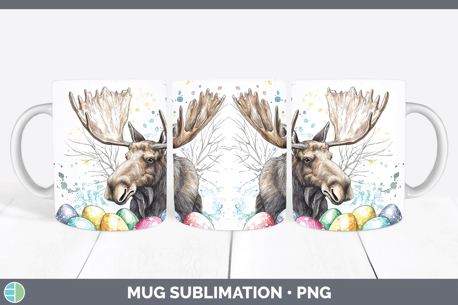 Easter Splash Moose Mug Wrap Sublimation Coffee Cup Designs