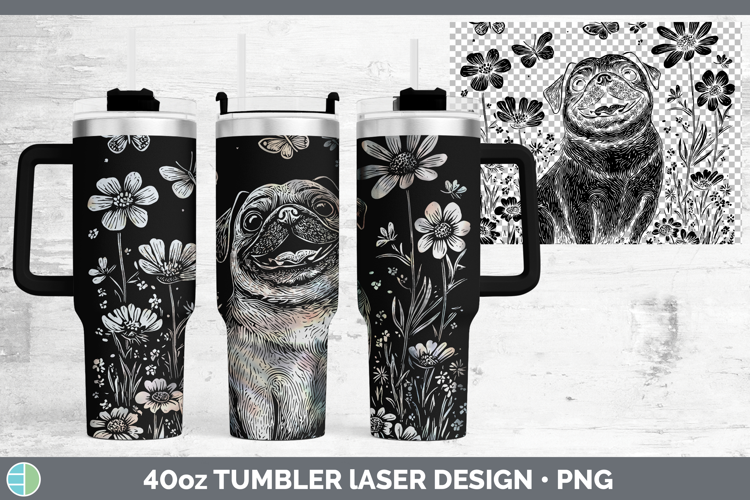 Wildflowers Dogs Pug Laser 40oz Tumbler Sublimation Tumbler