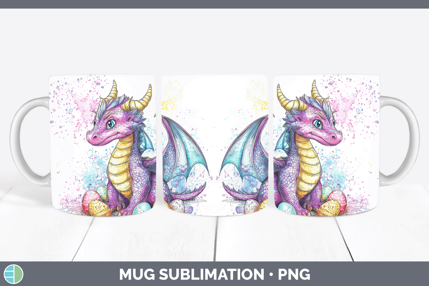 Easter Splash Dragon Mug Wrap Sublimation Coffee Cup Designs