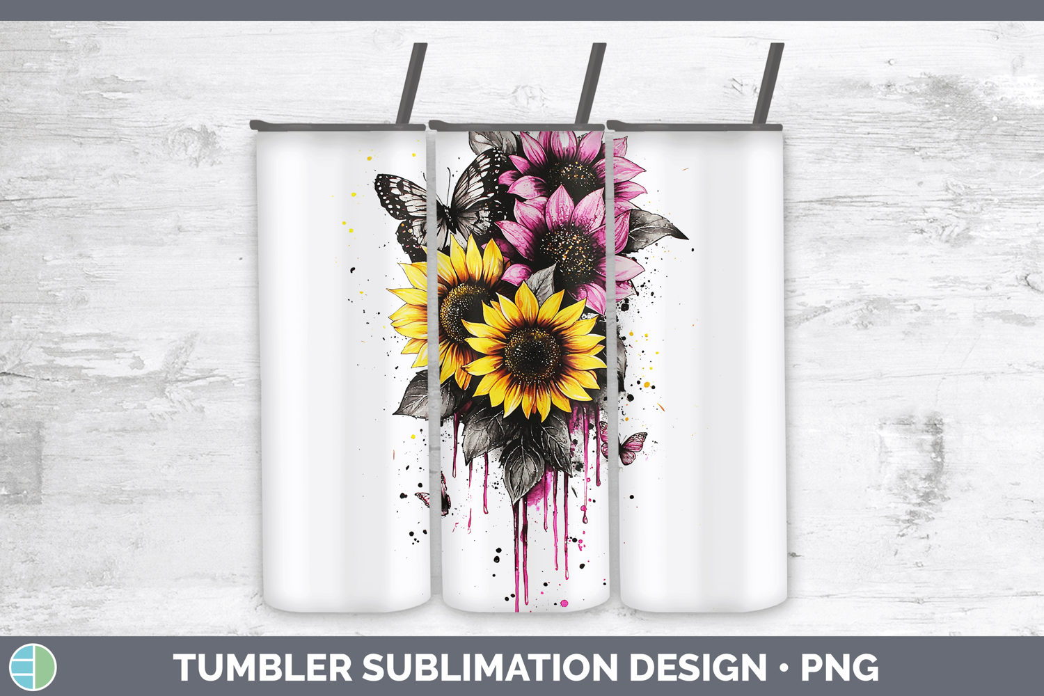 Pink Drips Sunflower Tumbler Sublimation 20 oz Skinny Tumble