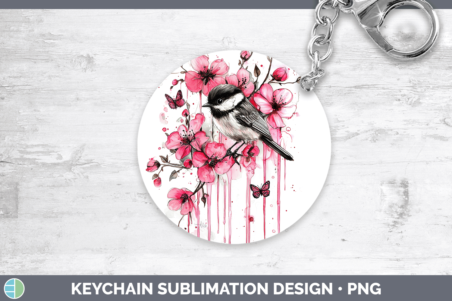 Pink Drips Chickadee Keychain Sublimation Keyring Designs