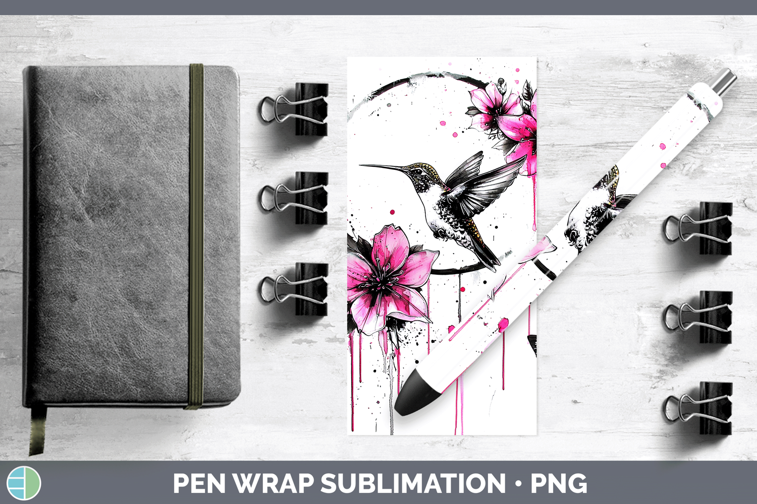 Pink Drips Hummingbird Pen Wrap Sublimation Pen Designs