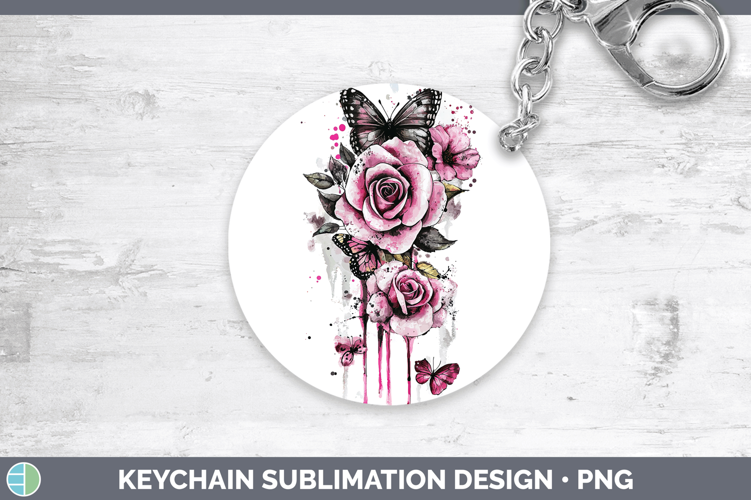 Pink Drips Rose Keychain Sublimation Keyring Designs