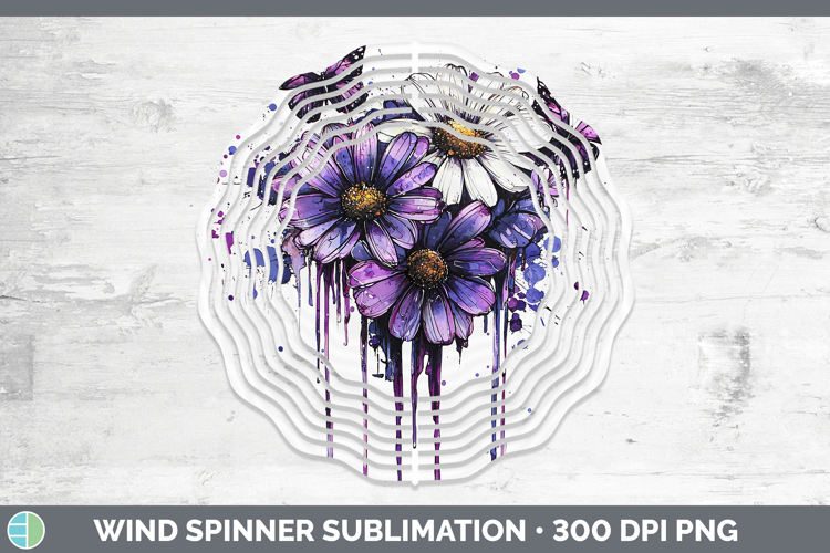 Purple Drips Daisies Wind Spinner Sublimation Spinner Design