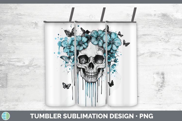 Similar Design Products to Teal Drips Skull Tumbler Sublimation 20 oz Skinny Tumbler De