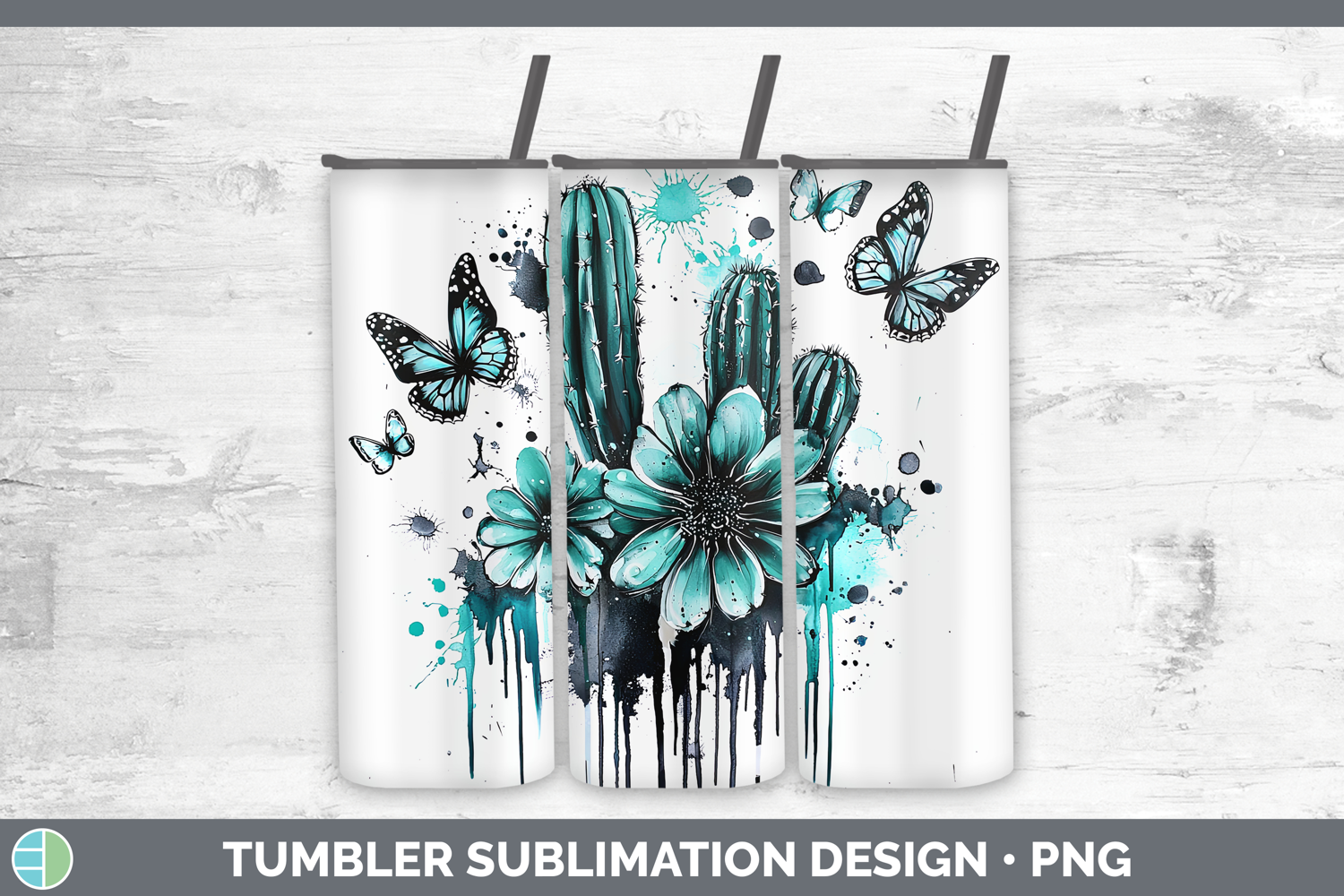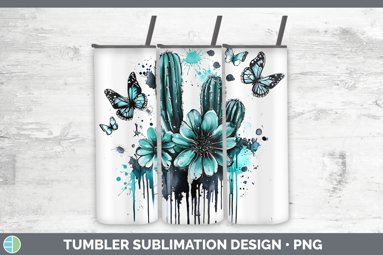 Teal Drips Cactus Tumbler Sublimation 20 oz Skinny Tumbler D