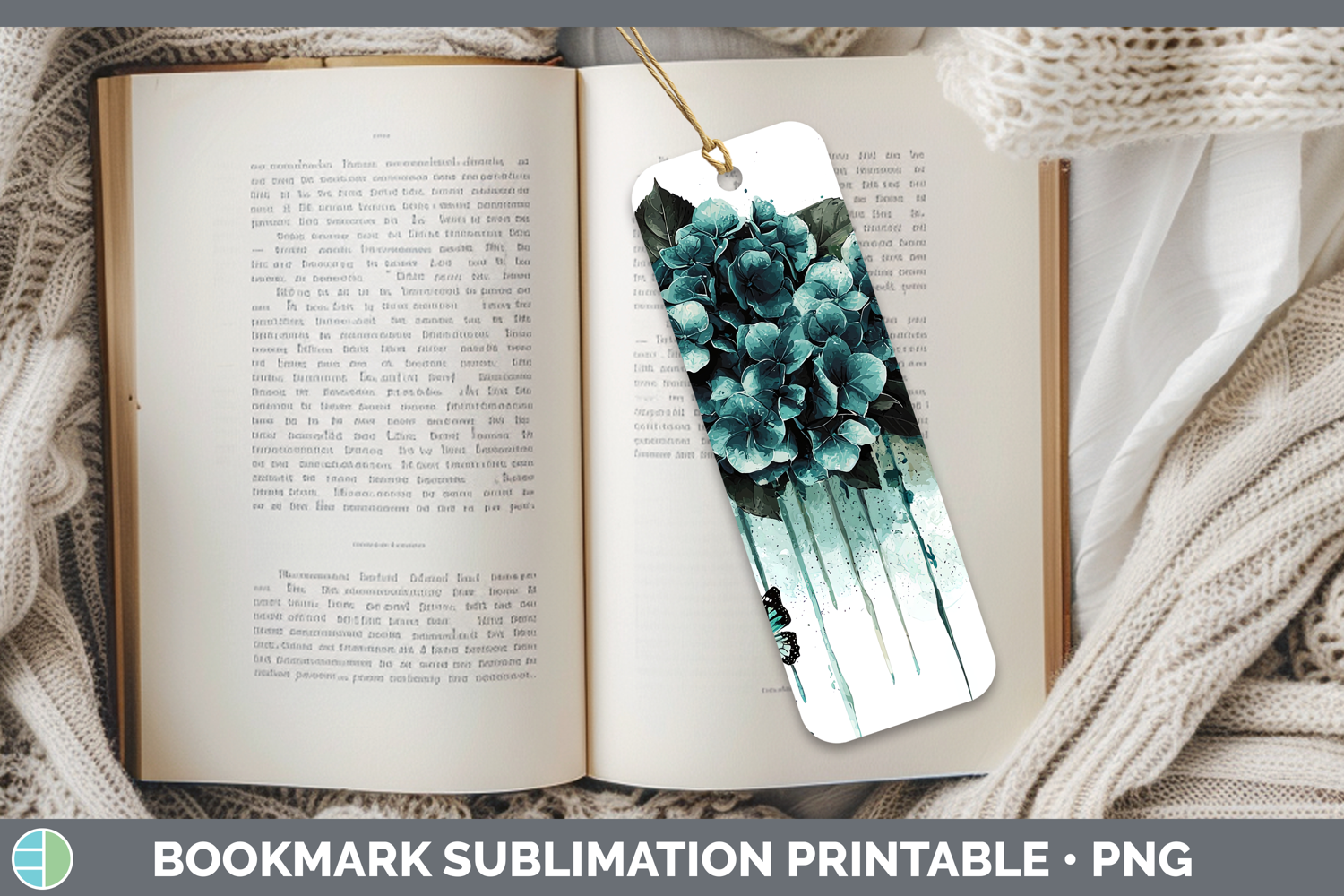Teal Drips Hydrangea Bookmark Sublimation Printable Designs