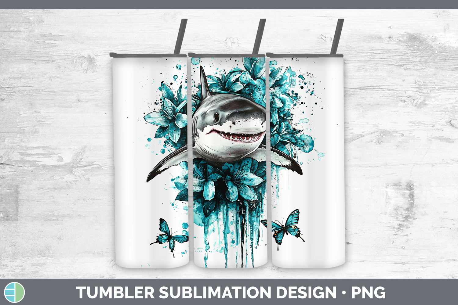 Similar Design Products to Teal Drips Shark Tumbler Sublimation 20 oz Skinny Tumbler De