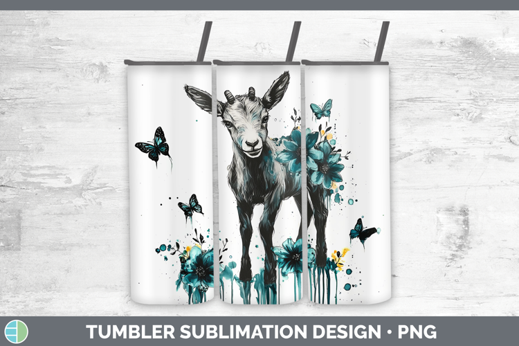 Teal Drips Goat Tumbler Sublimation 20 oz Skinny Tumbler Des