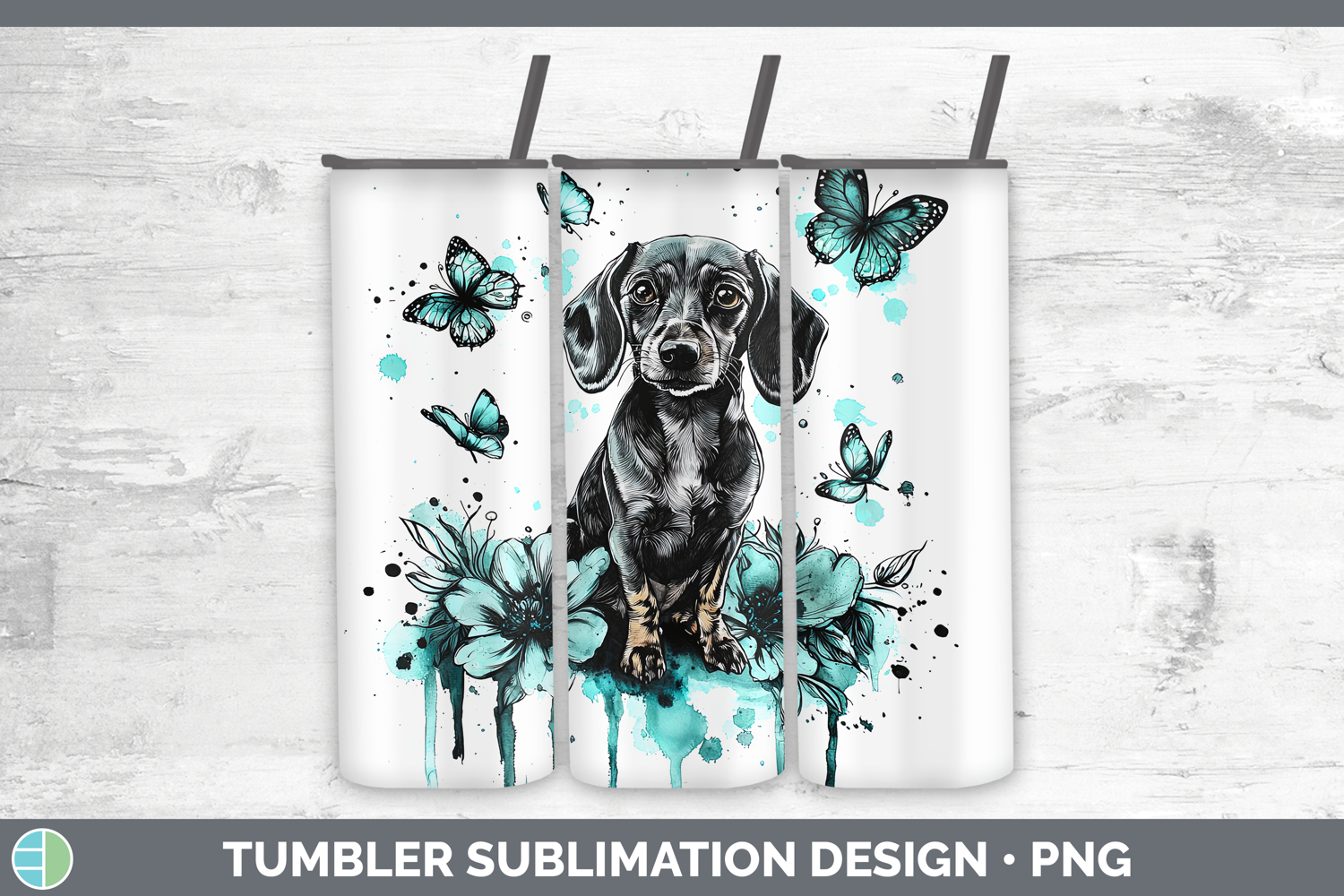 Similar Design Products to Teal Drips Dachshund Tumbler Sublimation 20 oz Skinny Tumble