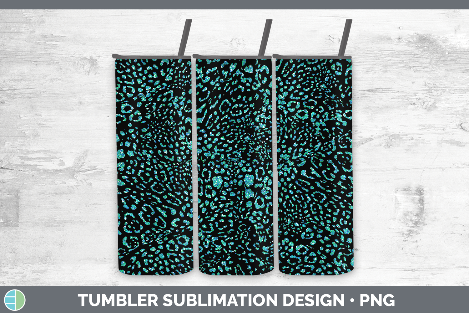 Animal Glitter Teal Jaguar Tumbler Sublimation 20 oz Skinny