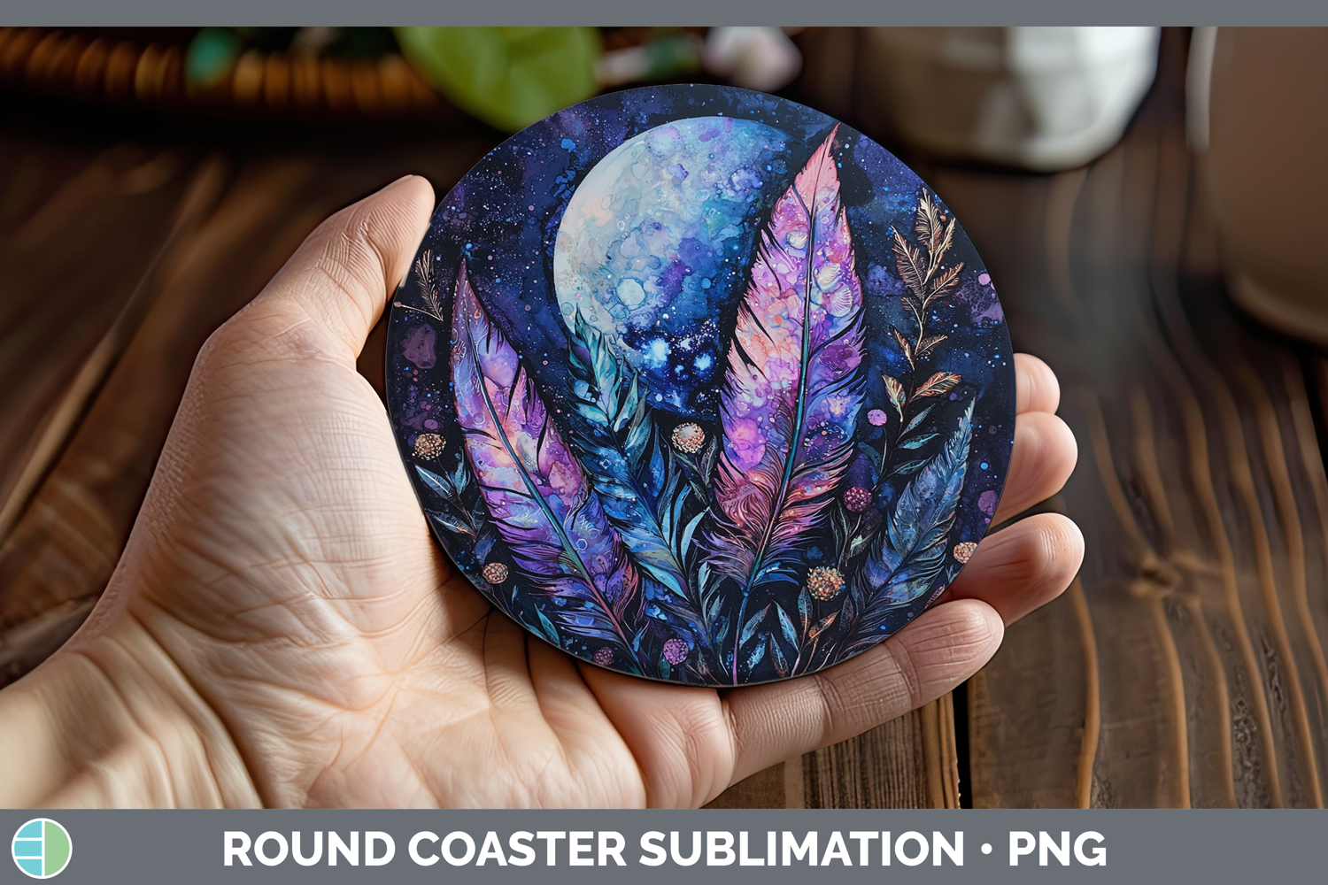 Galaxy Boho Feathers Round Coaster Sublimation Coaster Desig