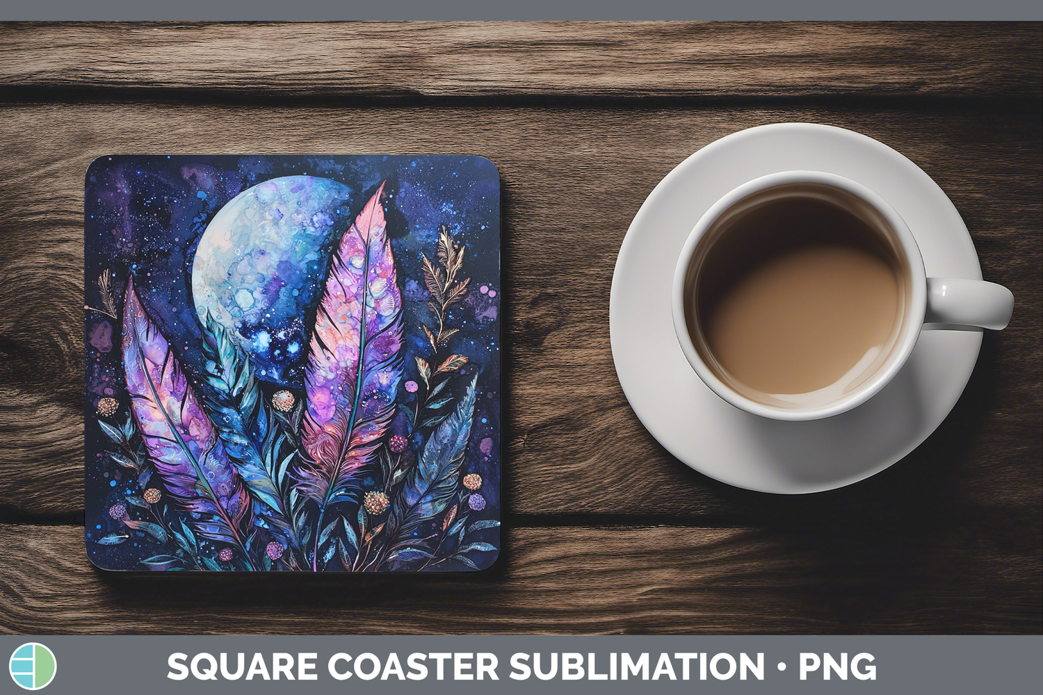 Galaxy Boho Feathers Square Coaster Sublimation Coaster Desi