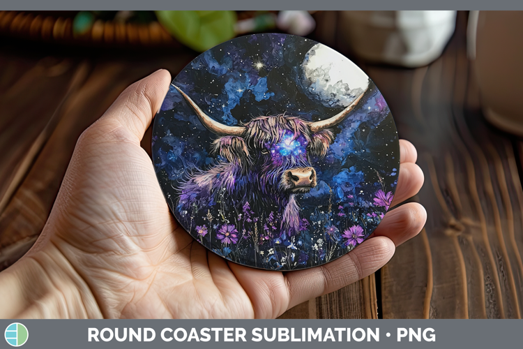Galaxy Highland Cow Round Coaster Sublimation Coaster Design