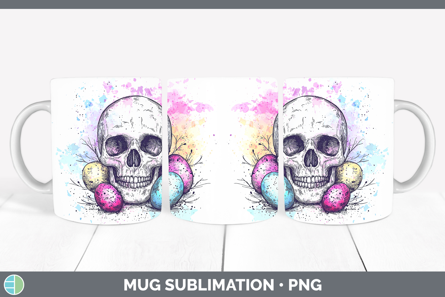 Easter Splash Skull Mug Wrap Sublimation Coffee Cup Designs
