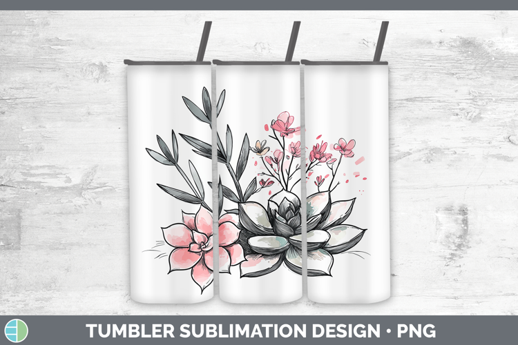 Sakura Succulents Tumbler Sublimation 20 oz Skinny Tumbler D